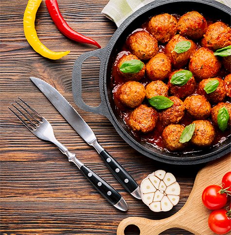 Mediterranean olives casserole, celeriac puree, mushrooms